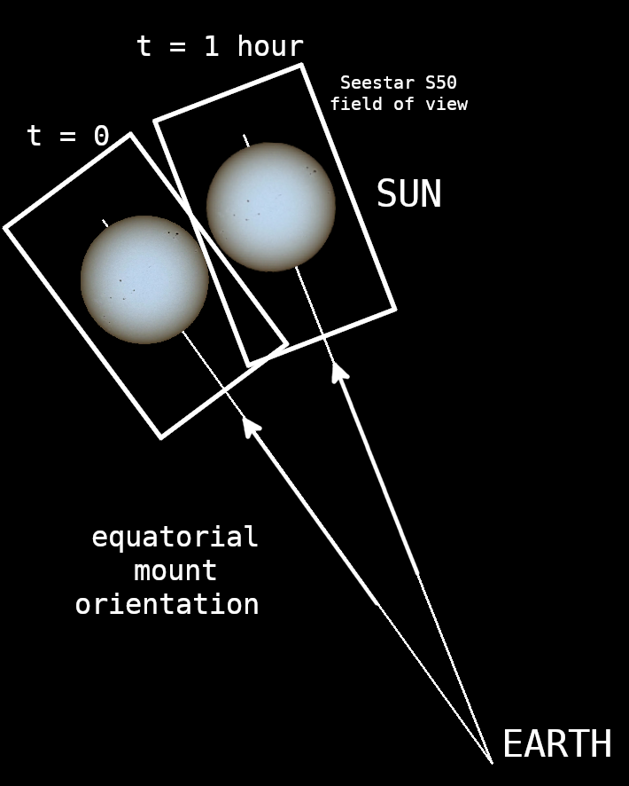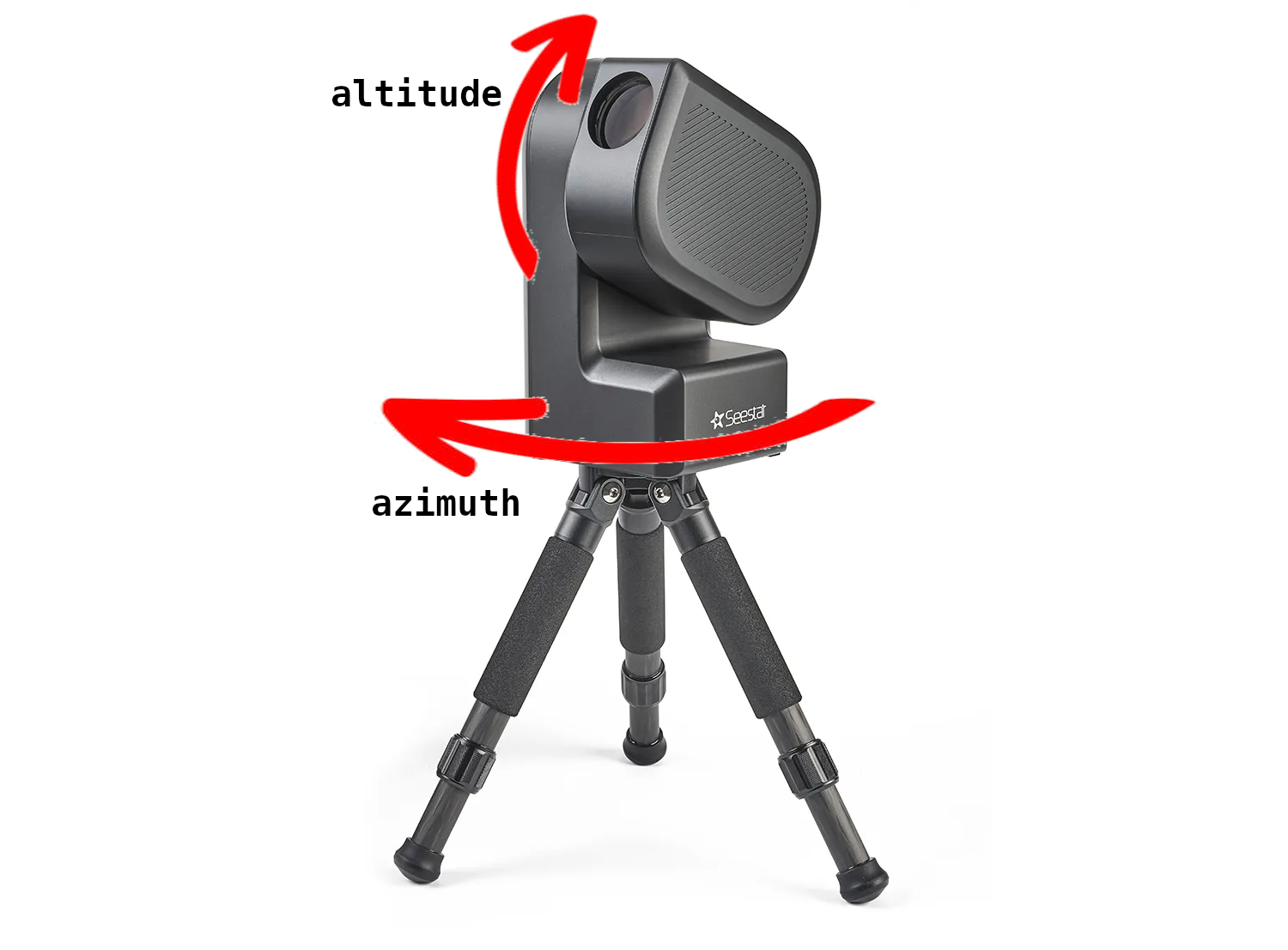 The Seestar S50 operates in alt-azimuthal mode by default. It tracks an object by rotating around two axes, thereby varying its altitude and azimuth (Figure 1).