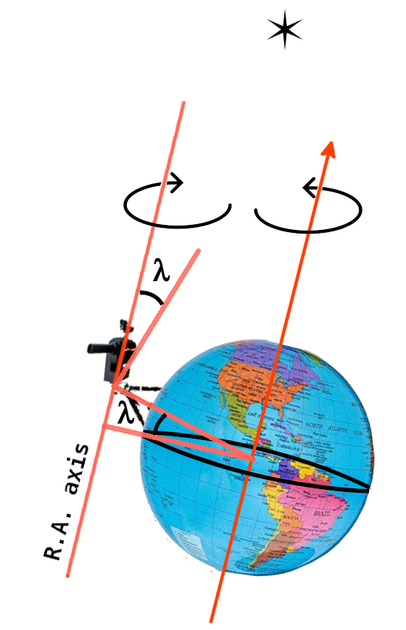 Figure 7 shows the new scheme for observing a star using an altazimuthal mount. If we have correctly oriented ourselves to Polaris, the effect of the Earth's rotation should be mitigated.